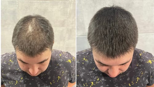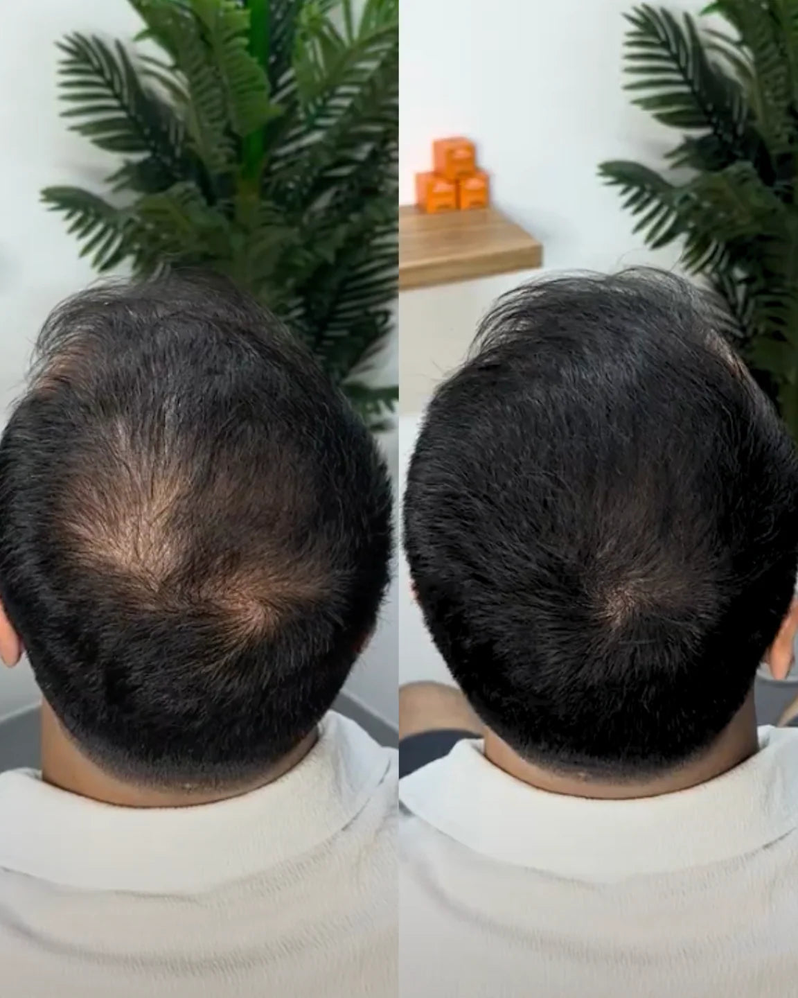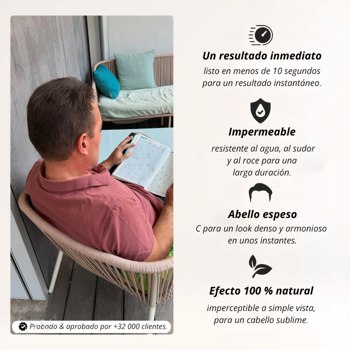 Gracias a la tecnología Procapil™, nuestra fibra capilar rellena al instante las zonas con poca densidad, fijándose de forma natural al cabello. Resultado imperceptible incluso de cerca — te ves más joven, más seguro… y se nota desde el primer vistazo.