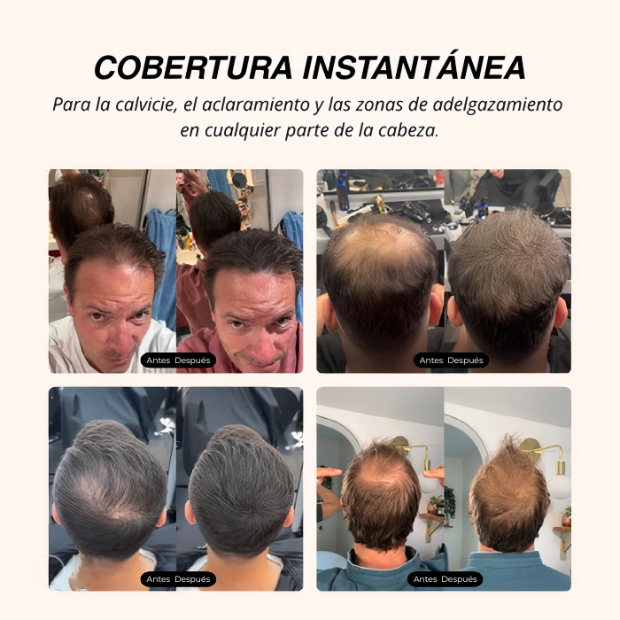 Un polvo capilar de camuflaje instantáneo, formulado a base de microfibras naturales de algodón, para ocultar la calvicie y las zonas con poco cabello en 10 segundos, sin cirugía ni tratamientos agresivos.